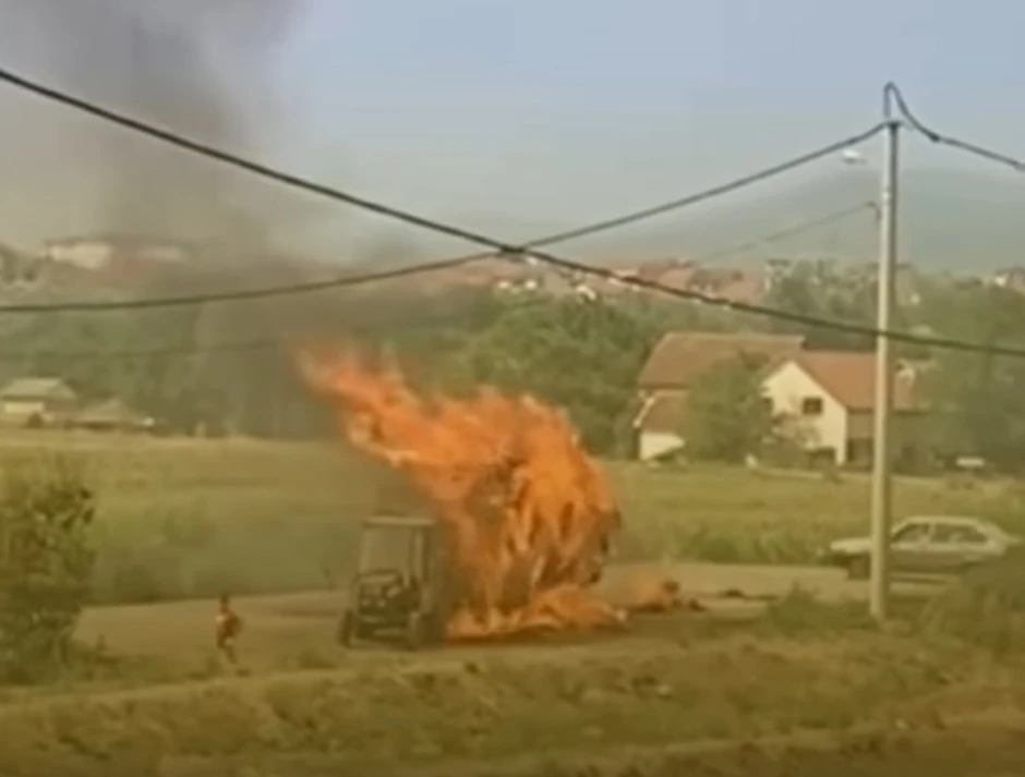 Prava drama odigrala se u subotu popodne na jednom seoskom putu kada je traktor, koji je vukao prikolicu krcatu senom, iznenada planuo u pokretu! U vozilu su se nalazili deda i njegov unuk, a samo pukom srećom uspeli su da pobegnu na vreme, pre nego što je vatrena stihija zahvatila prikolicu.