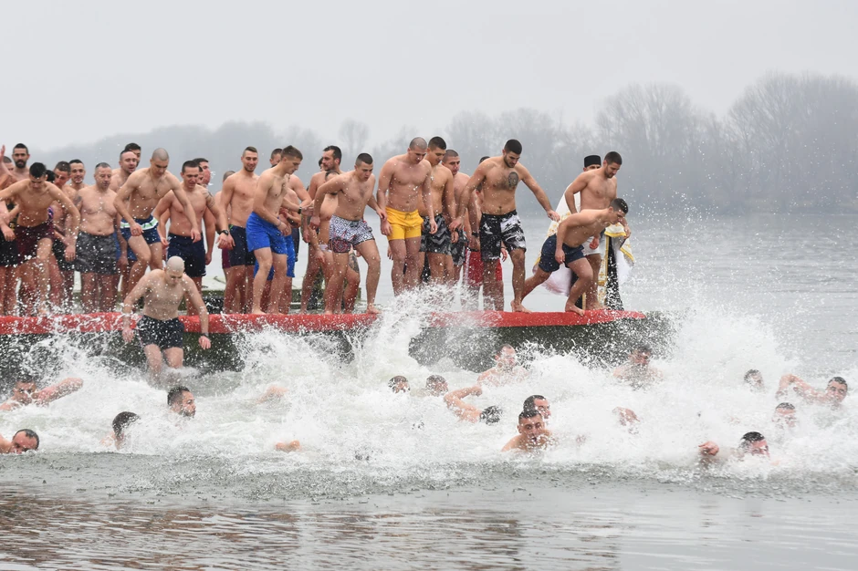 Policajac Nemanja Blagojević (25) pobednik je ovogodišnjeg bogojavljenskog plivanja za Časni krst koje su sedmu godinu za redom u Novom Sadu organizovali Srpska pravoslavna crkva i Savet Mesne zajednice Sremska Kamenica.