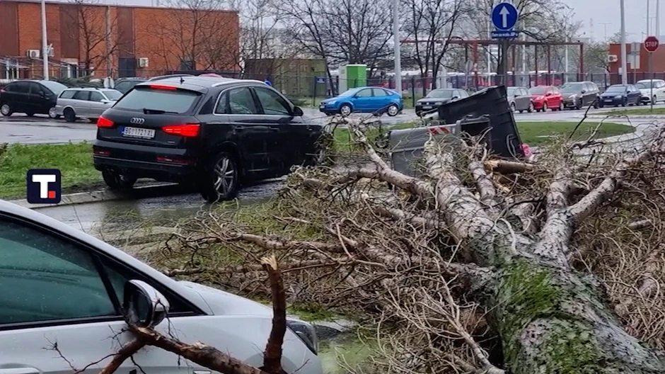 U naselju Vojvode Vlahovića, vetar je odneo deo krova sa zgrade, a slično se dogodilo i u Prizrenskoj ulici gde je pao odžak i porazbijao parkirane automobile.