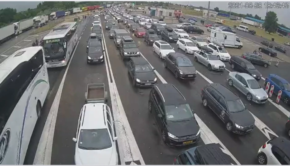 Da bi se prešla mađarsko-srpska granica, odnosno prelazi Reske i Horgoš, treba oko četiri sata, s tim što je kolona u Mađarskoj duga oko tri kilometra i tamo se čeka oko tri, a sa srpske strane oko jedan sat.