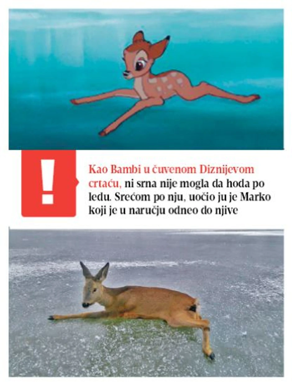 Srna je do zaleđenog jezera došla da pije vodu i, budući da nije mogla da se vrati jer je isuviše klizavo za nju, ostala je zatočena nasred jezera, sve dok je nije spazio Marko Protić (31).