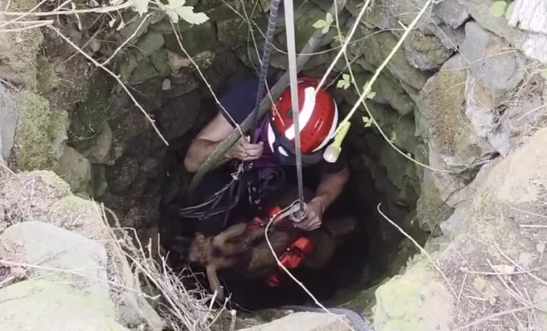 Na snimku, koji je objavilo Ministarstvo unutrašnjih poslova na svom Instagramu, može se videti momenat kada se vatrogasac spušta na dno bunara, uzima životinju u naručje i pažljivo je izvodi na sigurno.