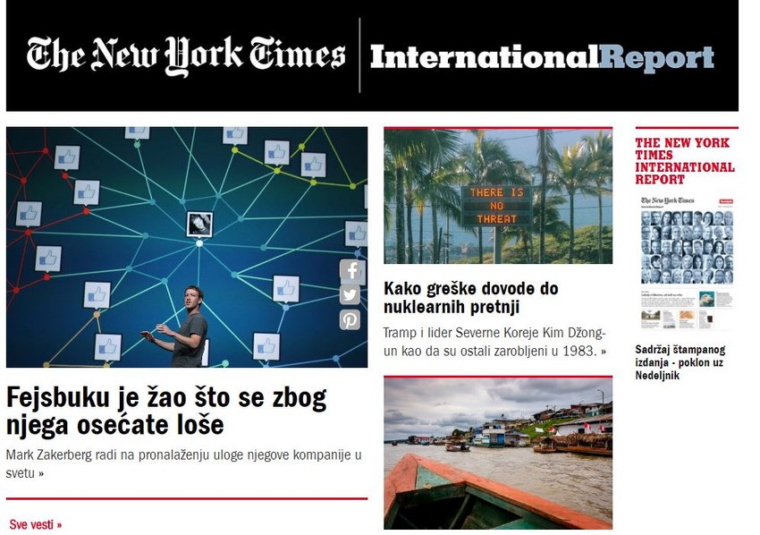 Beogradski magazin Nedeljnik i američki Njujork tajms pokrenuli su danas novi sajt Njujork tajmsa na srpskom jeziku - The New York Times International Report.