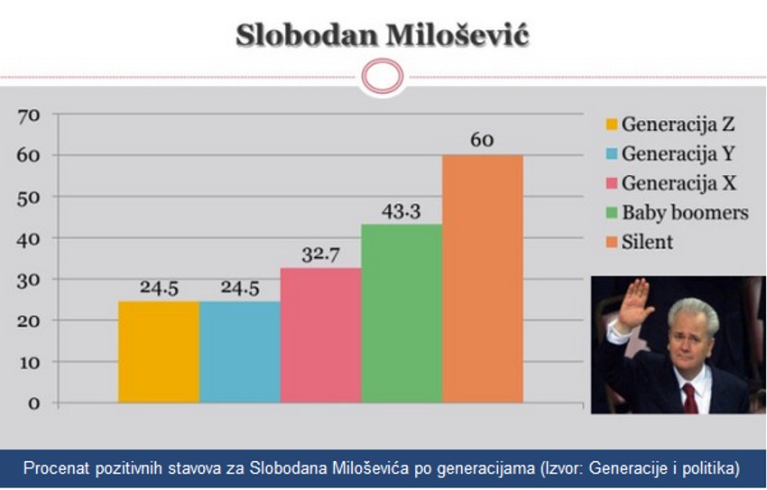 Za razliku od silent generacije, 24,5 odsto mladih za Miloševića ima pozitivno mišljenje, dok 71,7 odsto njih to kaže za Đinđića.