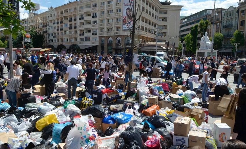 Na desetine tona humanitarne pomoći koju su donirali makedonski građani u danas će konvojem kamiona krenuti ka poplavljenim područjima u Srbiji i Bosni i Hercegovini. Kako je saopštio Crveni krst, akciji za sakupljanje pomoći do je na punktovima u Skoplju donirano 20 tona prehrambenih proizvoda, 10 tona sredstava za higijenu, 60 hiljada litara vode, hiljadu ćebadi, tona hrane za bebe, tri tone mleka, 10 tona odeće, hiljadu pari obuće.