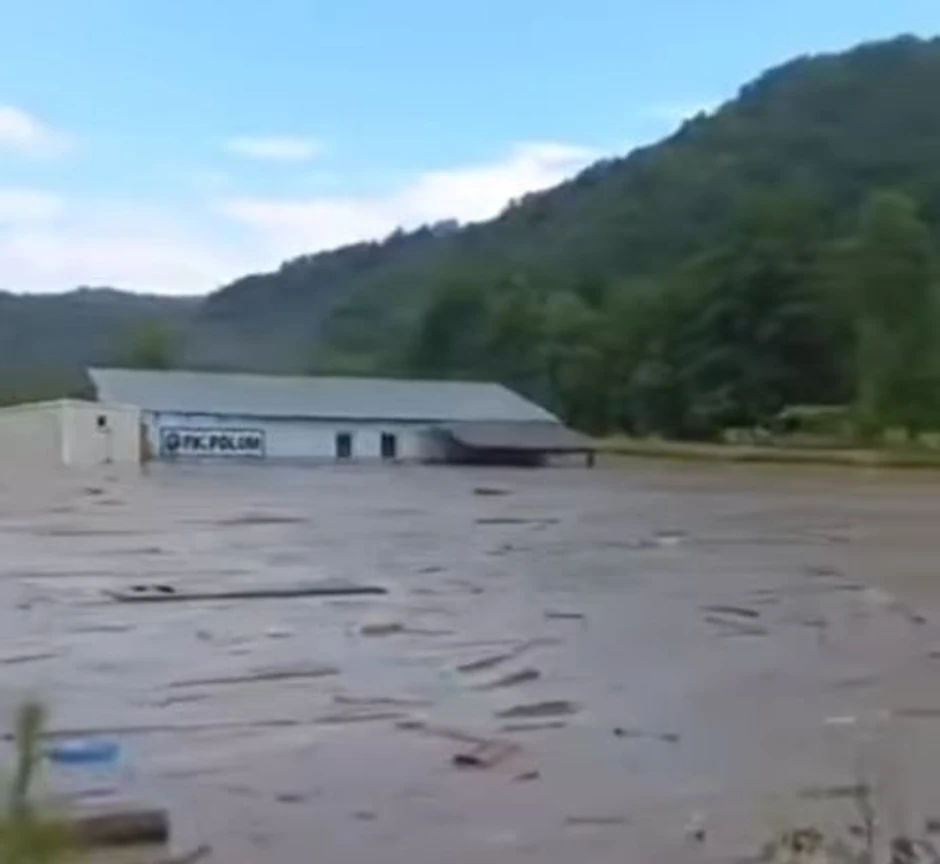 Kao što se vidi na video zapisu koji je objavljen na društvenim mrežama, fudbalskog terena u Leskovu gotovo nema, pokriven je vodom, sve je potpuno poplavljeno.