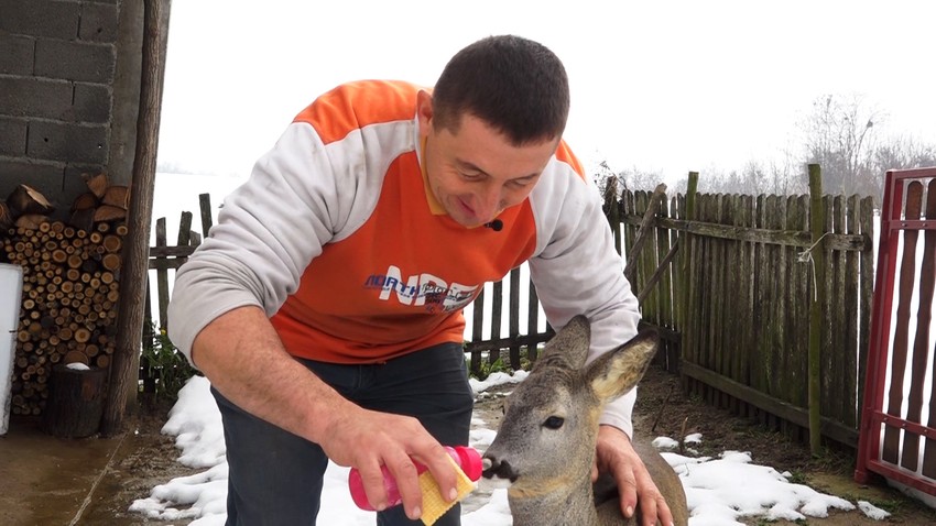 - Odjednom sam u travi ugledao lane. Bilo je malo i iznemoglo pa nije moglo ni da se kreće. Okolo nije bilo srna, nije bilo ni njene majke. Ja sam je pomerio da je ne bih zakačio dok kosim, a kad se pojavio vlasnik njive nismo znali šta da radimo sa njom, a nismo mogli da je ostavimo tako slabu. Onda smo se dogovorili da je ja ponesem kući dok malo ne ojača. Stavio sam je u majicu i tako doneo kući – priča Zlatomir Antonić.