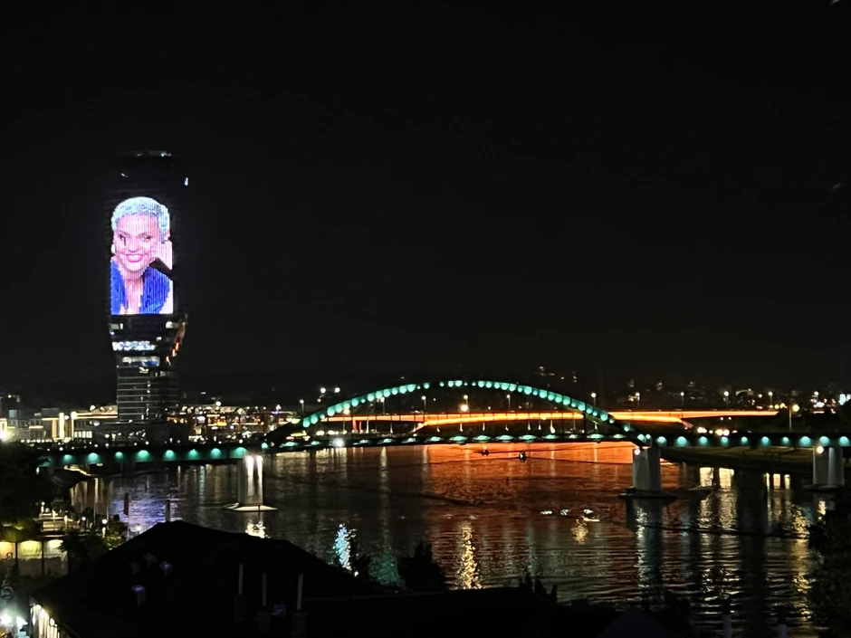 U susret koncertima koji će se održati na predstojećem Belgrade River Fest-u 22. i 23. jula, proteklog vikenda na fasadi Kule Beograd, najveće zgrade ovog dela sveta, projektovane su animirane fotografije svetski poznatih umetnika Andree Bočelija i Marize.