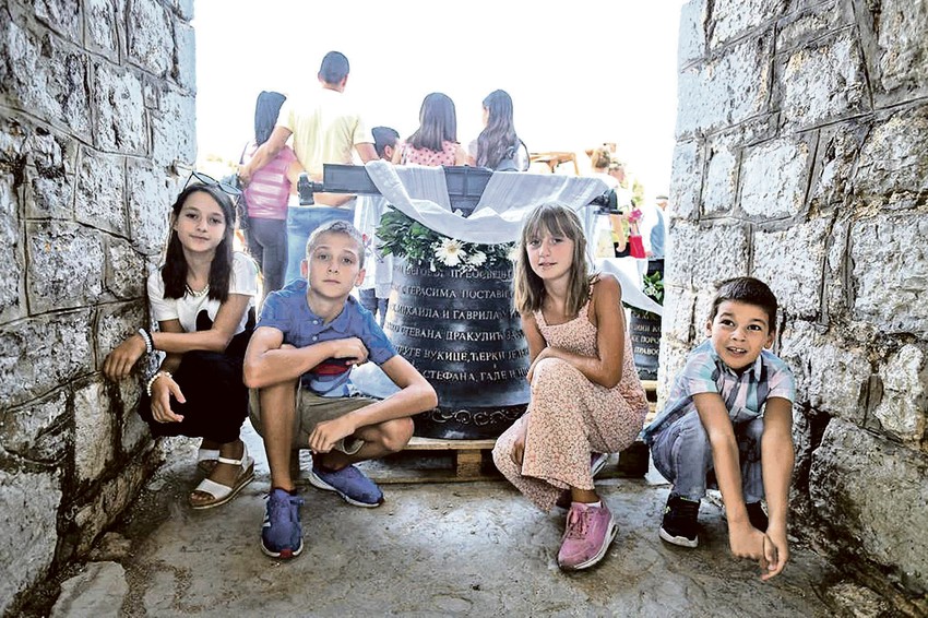 Tako se ispred oronulih, ali prkosnih zidina spaljenog hrama na obodu centra Korenice, gradića u istočnoj Lici, našlo više od stotinu Srba sa decom iz cele regije. Došli su na obred osveštenja novih zvona.
