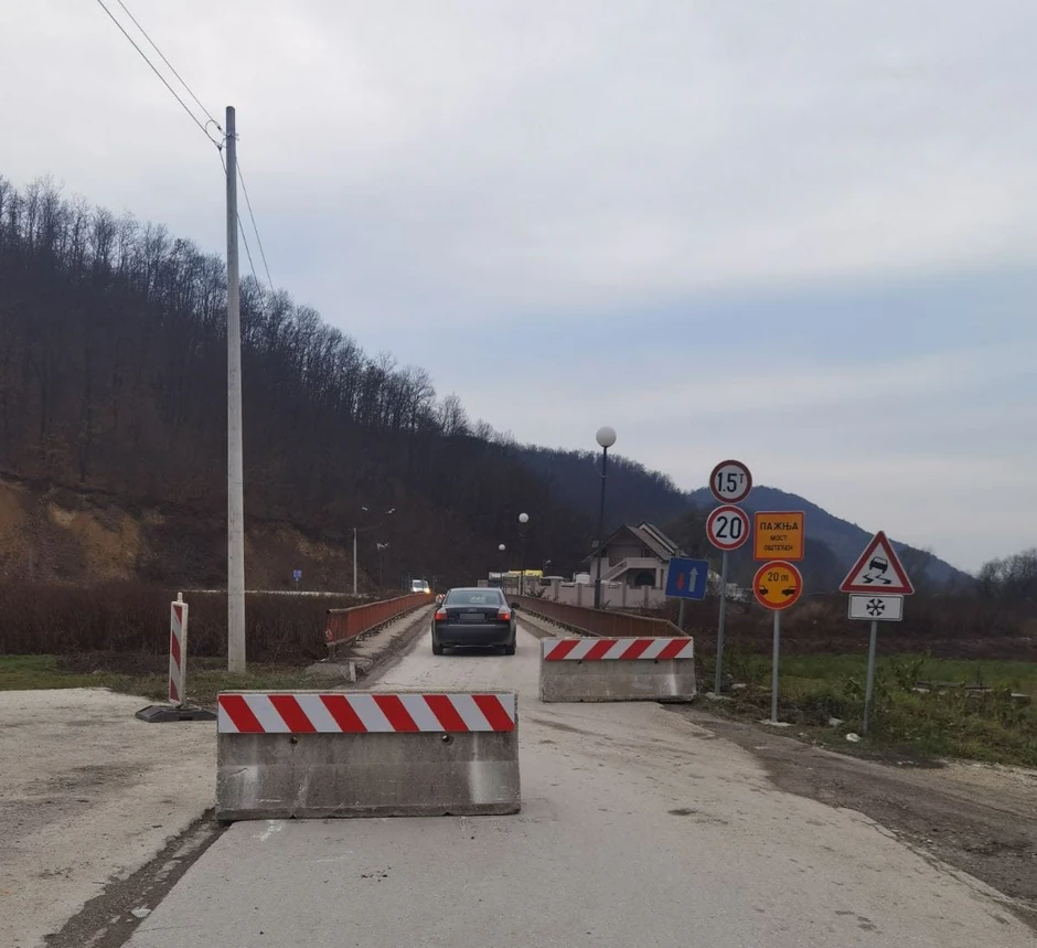 Za dva mosta na državnom putu drugog reda kojima gazduju "Putevi Srbije" ,a nalaze nad rekom Bjelicom u opštini Lučani, doneto je rešenje za zabranu prelaska izuzetno lošeg stanja. Danas su postavljene betonske barikade koje onemogućuju prolaz za teretni saobraćaj.