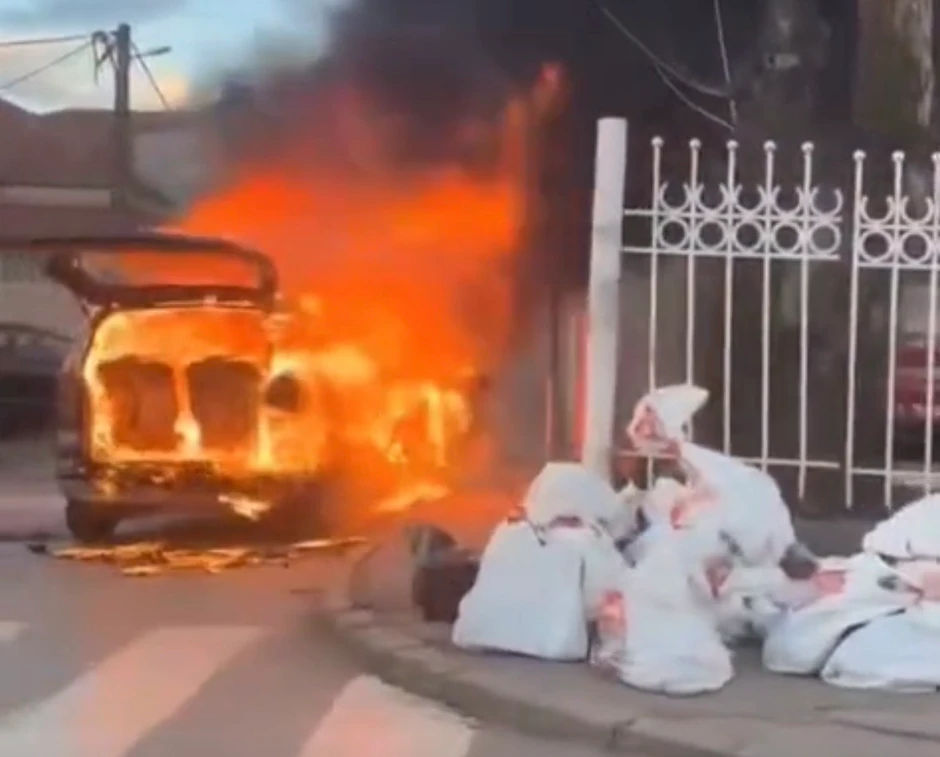 Na snimku požara koji se pojavio na društvenim mrežama vidi se kako je vozilo u potpunosti zahvaćeno vatrom, dok gust dim kulja iz automobila.