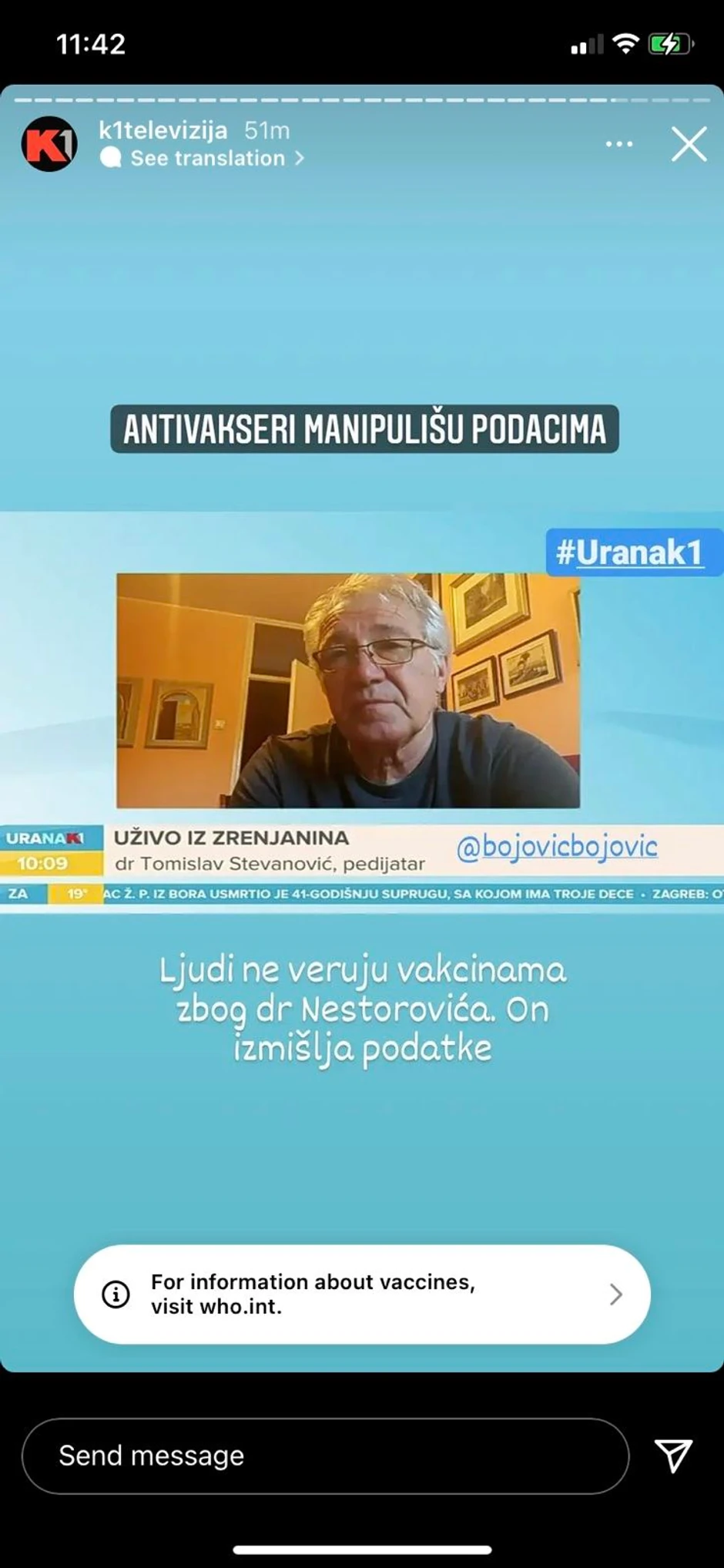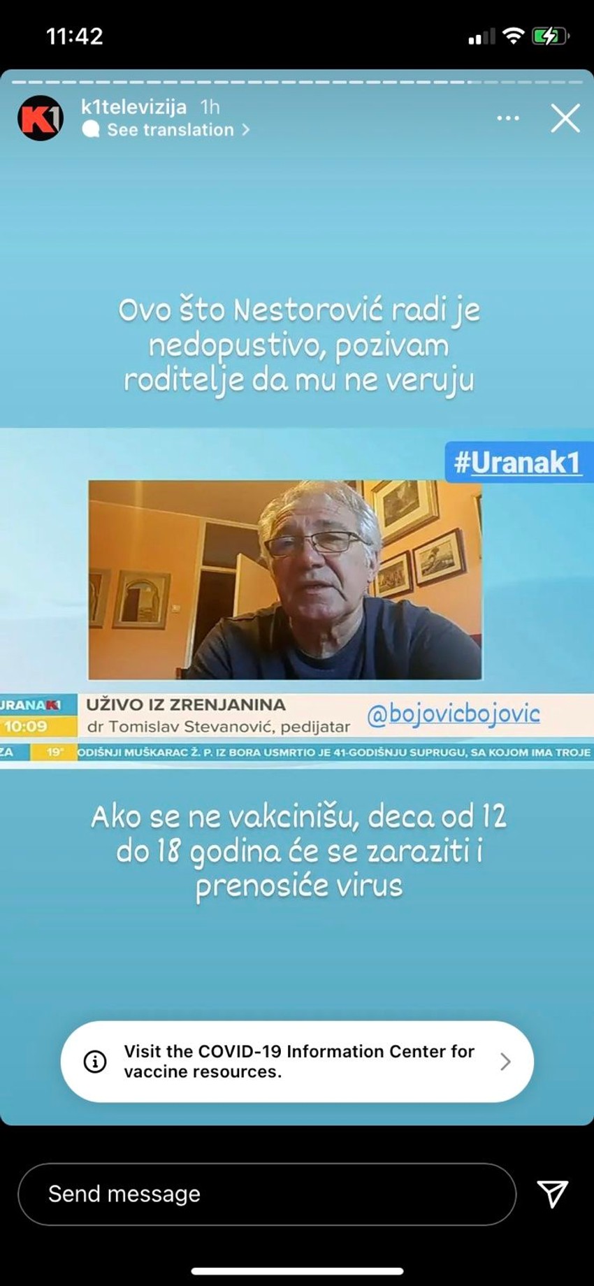 - Ljudi ne veruju vakcinama zbog dr Nestorovića. On izmišlja podatke - upoziorio je Stevanović.