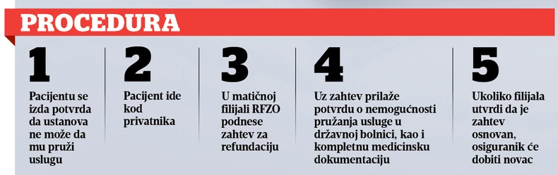Ukoliko državna zdravstvena ustanova nije u stanju da obavi prvi pregled u roku od 30 dana, direktor ustanove, odnosno doktor, dužan je da pacijentu izda potvrdu kojom se upućuje kod privatnog lekara.
