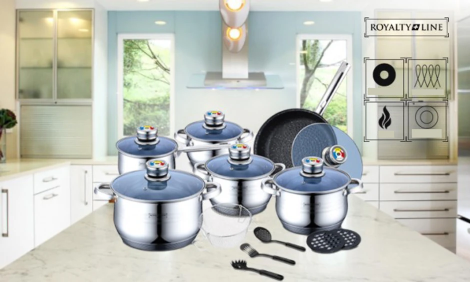 Royalty Line set posuđa od 18 delova po ceni od 8.499 dinara. Kvalitetan set osuđa sa višeslojnim dnom i poklopcima sa termostatima, samo na akciji gruppi.rs.