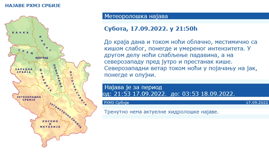 Kako stoji na njihovom sajtu, najava važi do zore odnosno do 3.53 sati.