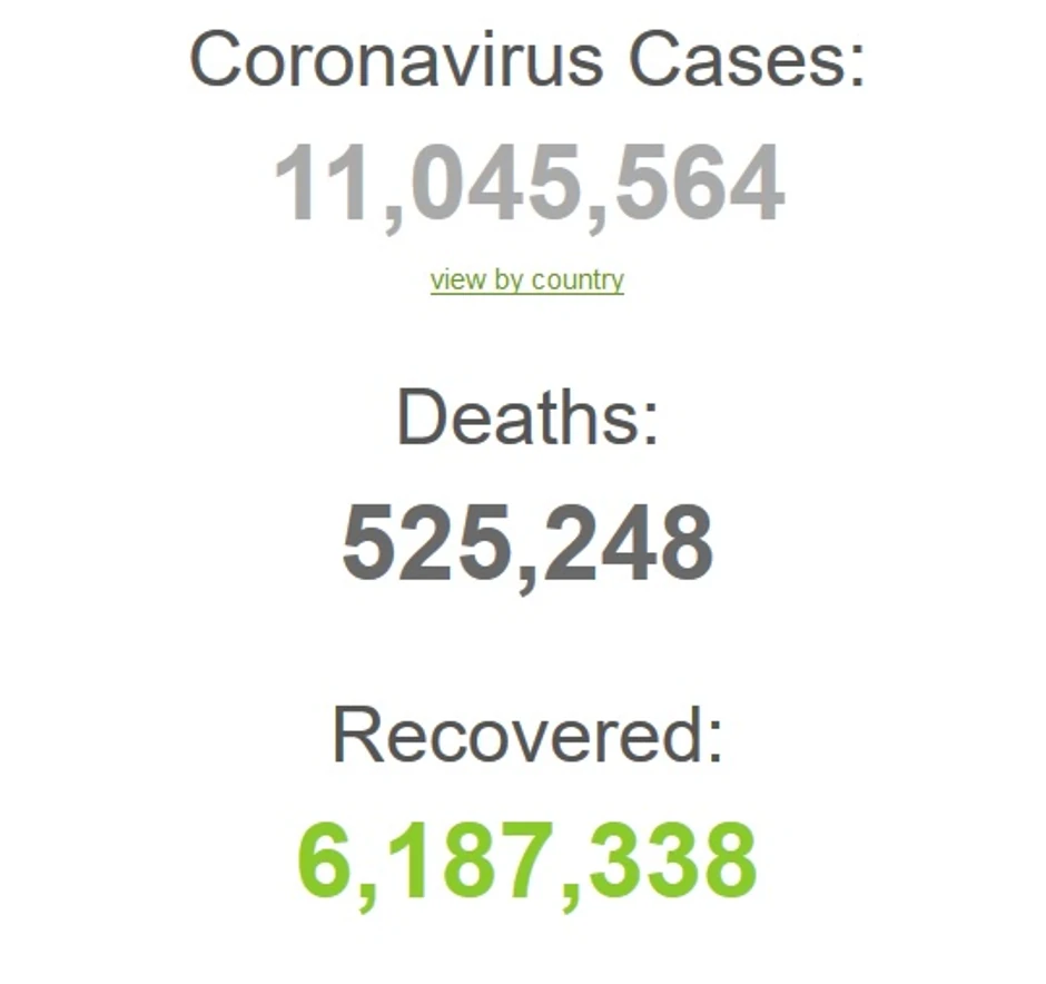 Broj zaraženih od korona virusa u svetu prešao je 11 miliona i sada iznosi, prema podacima portala Worldometers, 11.045.564.