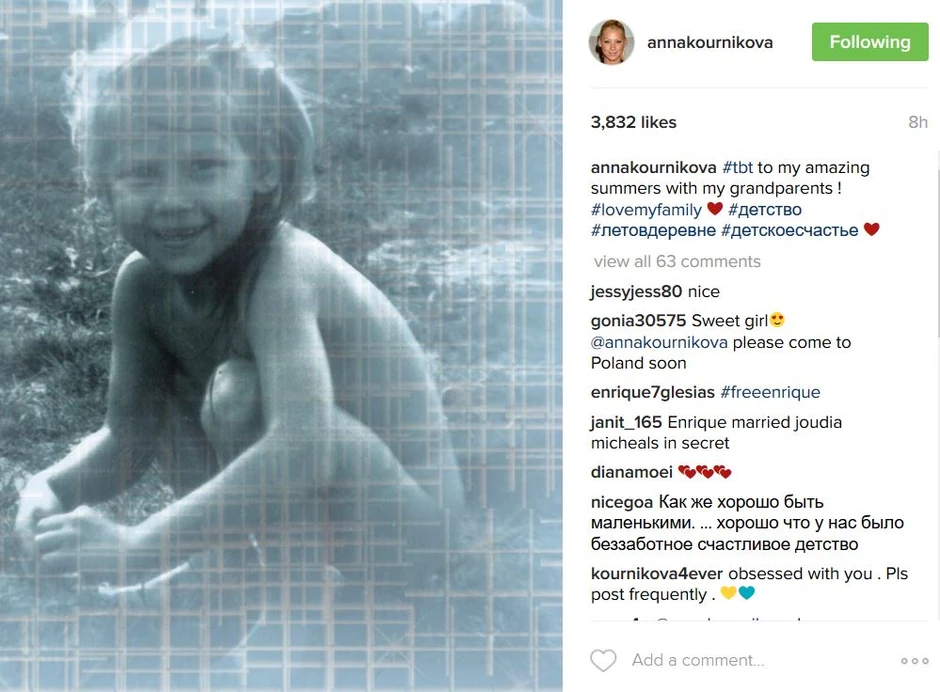Ana Kurnjikova objavila je na Instagramu simpatičnu fotografiju iz svog detinjstva.
