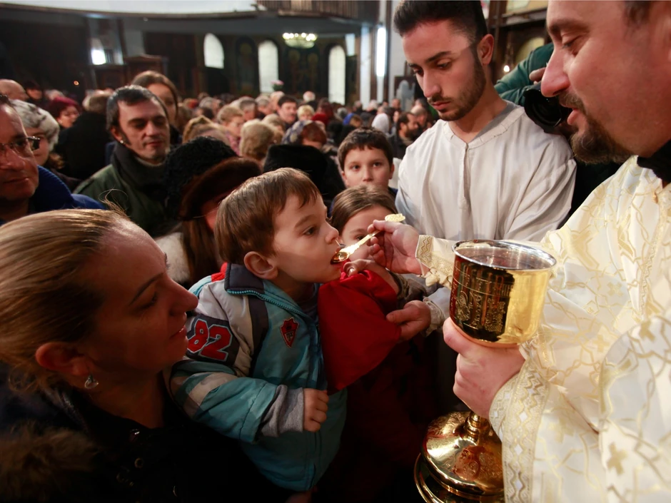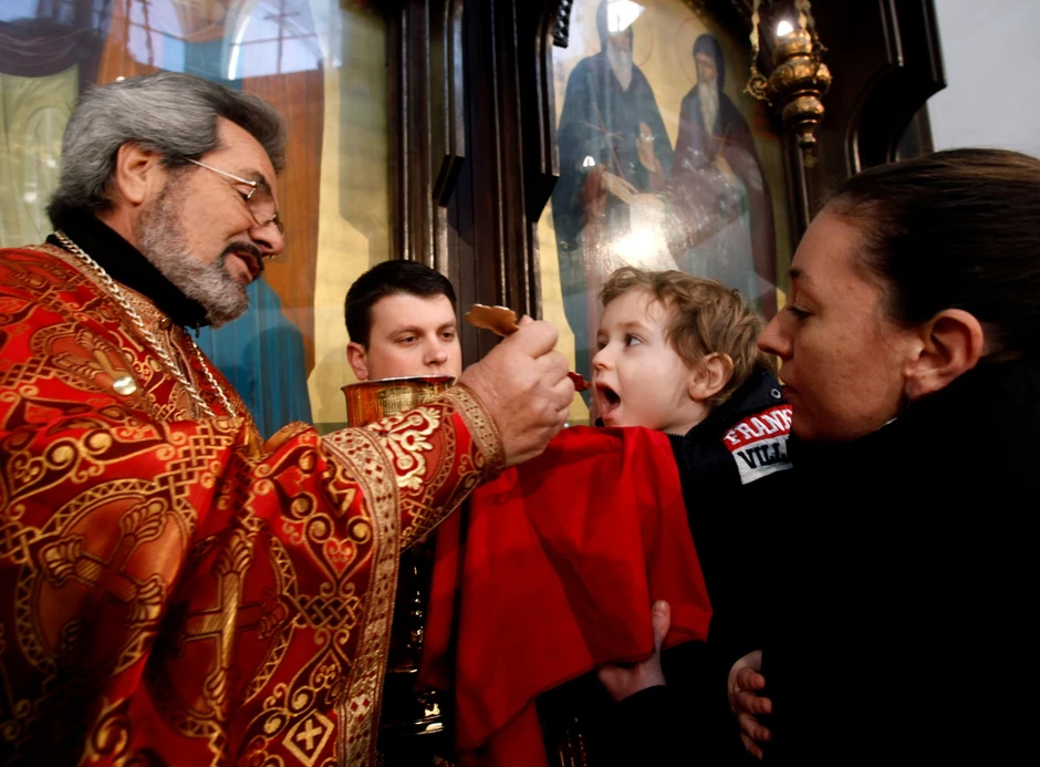 Dok jedni smatraju da je to neprimereno i potpuno nehigijenski, vernici bez straha odlaze na pričest, a u redovima za sveto pričešće stoje i majke sa bebama, deca, trudnice, odrasli, bake, deke, zdravi i bolesni...