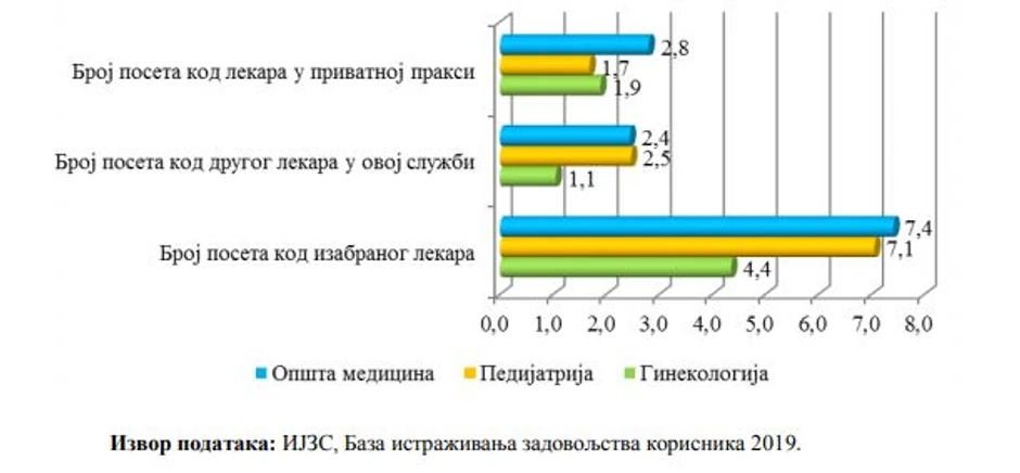 Prema ovoj analizi, prosečan pacijent građanin Srbije, lekara posećuje devet puta godišnje, od čega šest sedam puta svog izabranog lekara, i dva ili tri puta nekog drugog specijalistu. Najviše veruje doktorima opšte prakse i pedijatrima, a prema poslednjim objavljenim rezultatima, poverenje pacijenata u ginekologe neznatno je smanjeno.
