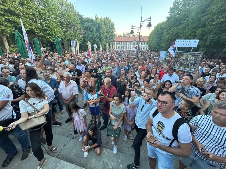 Građani Kraljeva okupili su se na centralnom gradskom trgu u znak protesta zbog najava eksploatacije litijuma u Srbiji.