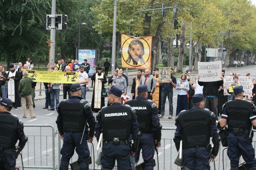 Grupa od oko 70 ljudi, predvođena sveštenim licima kreće se trasom kojom je prošao Prajd. Sveštenici kade ulice i prosipaju svetu vodicu. Jedan sveštenik pocepao je zastavicu duginih boja, koja je simbol LGBT populacije.