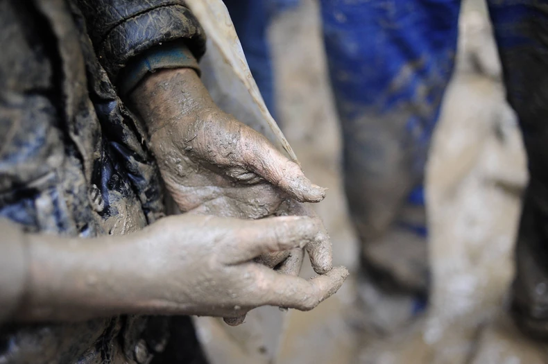 Mlađoj devojčici suze klize niz obraz, a starija ih skriva ispod kapuljače, grizući usne da ne brizne u plač, dok joj blatnjave ruke drhte na vetru.