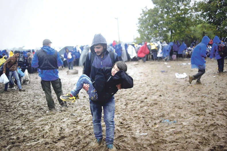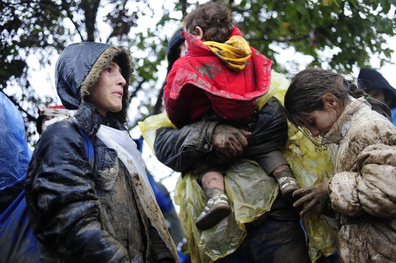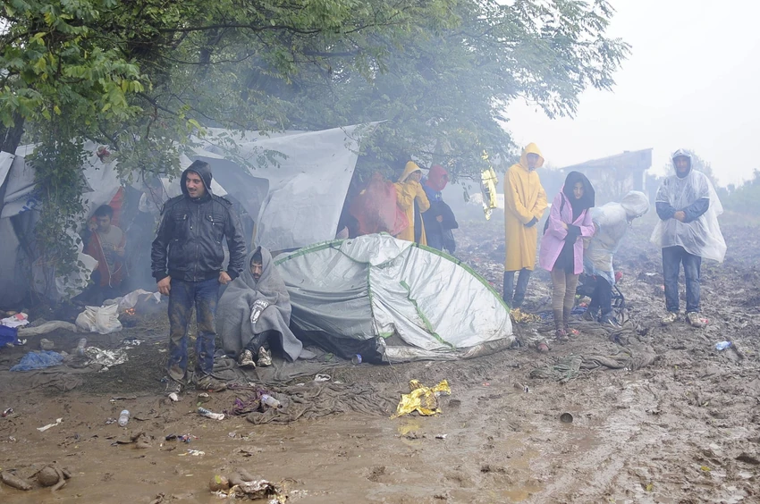 Pod šatorima na blatu i ćebadima iz kojih se cedi voda sede roditelji koji u krilima drže decu. Većina migranata je na otvorenom, mokra i blatnjava.
