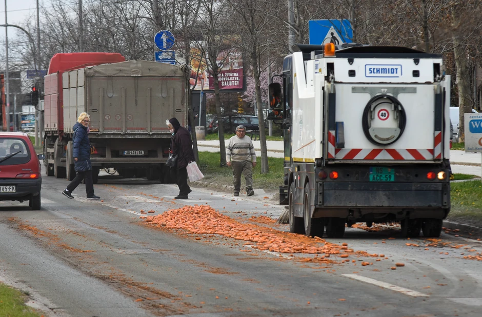 Iz kamiona koji je prevozio šargarepe velika količina tereta se prosula na središnji deo Bulevara kneza Miloša u Novom Sadu.