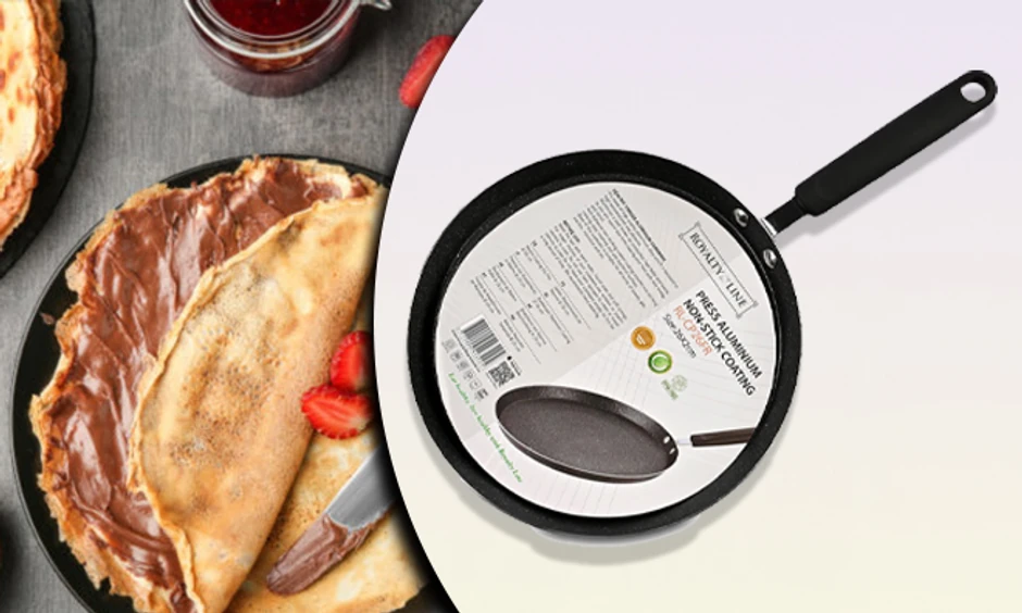 Sa lakoćom pripremite omiljenu poslasticu za celu porodicu uz Royalty Line tiganj za palačinke! Nelepljiva površina zahteva manje masti i ulja u procesu kuvanja i lako se čisti, a na vama je da izaberete tiganj od 24cm za samo 799 dinara ili tiganj od 26cm za 999 dinara na akciji klikom na gruppi.rs.