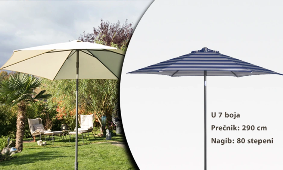 Tu je i Green Lounge Push-up suncobran sa prečnikom od 290cm što ga čini lakim za sklapanje i otvaranje, a isto tako pokriva dosta otvorenog prostora. Ima mogućnost nagiba od 80 stepeni i dostupan je u krem, sivoj, terakote i zelenoj boji. Naručite ovaj idealan suncobran za vašu terasu za samo 2.999 dinara na sajtu gruppi.rs.