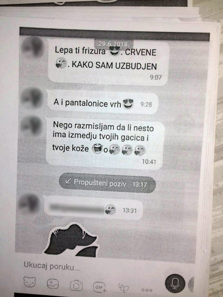 "Jutros sam bez gaćica ili imam crvene čipkaste jer znam da voliš, Ž. Imam bele pamučne, pošto se ložiš na njih... kreativna si, smislićeš već nešto", neke su od poruka koje su stigle studentkinji.
