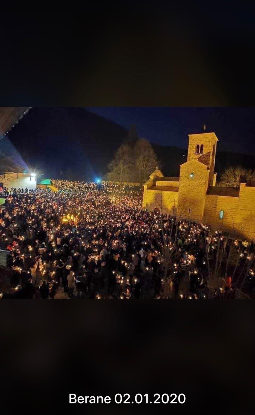 U Beranama se na protestnoj litiji od centra grada do tri kilometra udaljenog manastira Đurđevi stupovi okupio do sada rekordan broj građana.