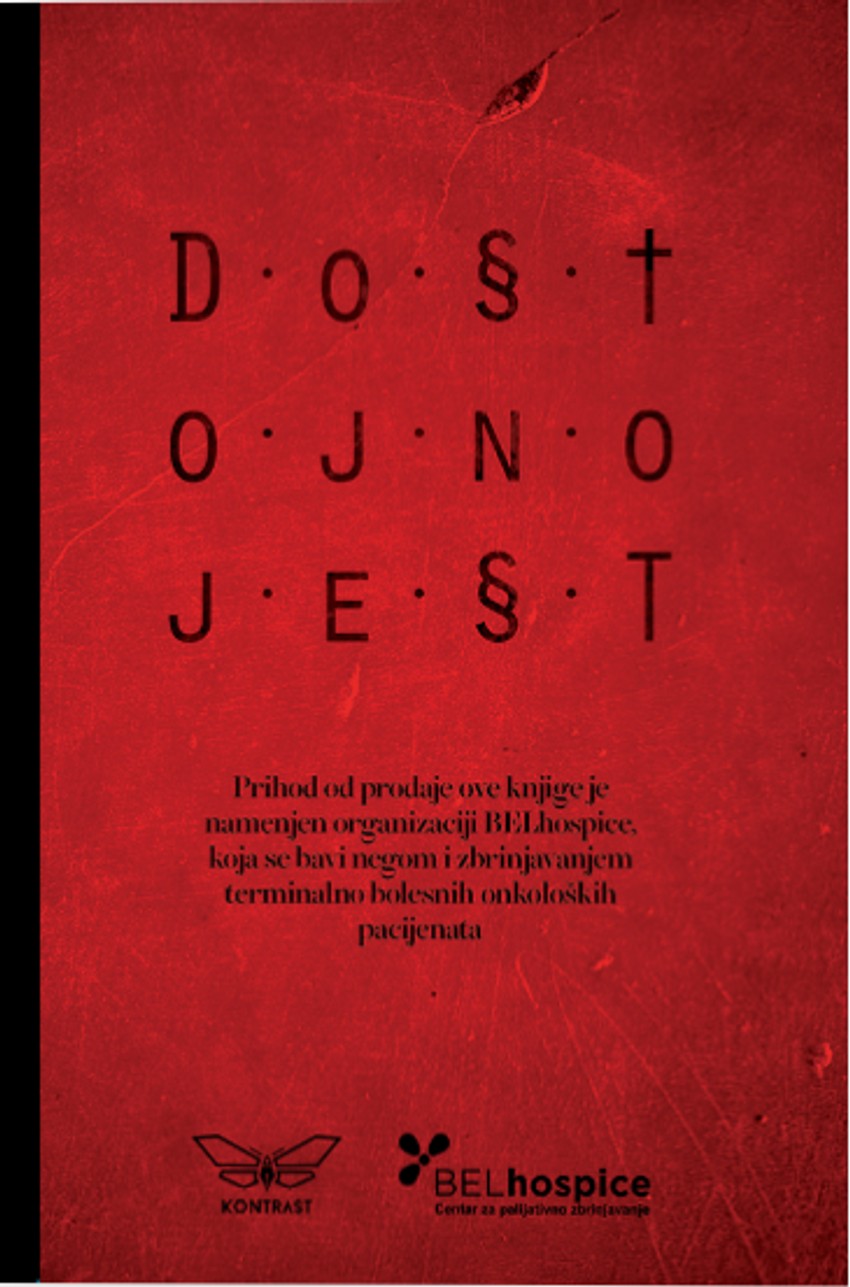 To svakako nije ništa novo. Ljudi umiru od kancera u Beogradu na svakih sat vremena. Mnogo strašnija jeste činjenica da u trenutcima kada im je lekarska nega najpotrebnija, u našem sistemu zdravstva, ona izostaje. Tri sata pred njenu smrt sam čuo za organizaciju "BELhospice" ali je za nju već bilo kasno da se bilo šta učini i ona se ugasila na najužasniji način. Tada sam rekao sebi da ću jednoga dana, kada budem u mogućnosti, učiniti sve da za tu organizaciju, kada već našu državu to jako malo dotiče, čuje što veći broj ljudi i da se stvori svest o ovom najvećem nepoznatom problemu u Srbiji (činjenici da nakon utvrđivanja terminalni statusa, obolele puštaju na kućno lečenje). Prošlo je od tada više od četiri godine i sada sam pomislio da je trenutak i da mogu ovako nešto da učinim. Uredili smo zbornik Dostojno jest, najboljih uradaka naših blizu sedamdeset autora, kojima ću dok me pamet služi biti zahvalan na ovom gestu a od čije će prodaje celokupan prihod biti doniran pomenutoj organizaciji. Takođe je i dirljiv gest naših saradnika "No kachi" štamparije i "Europapir Dunav" koji su donirali potreban materijal za izradu prvih 1,000 primeraka knjige.