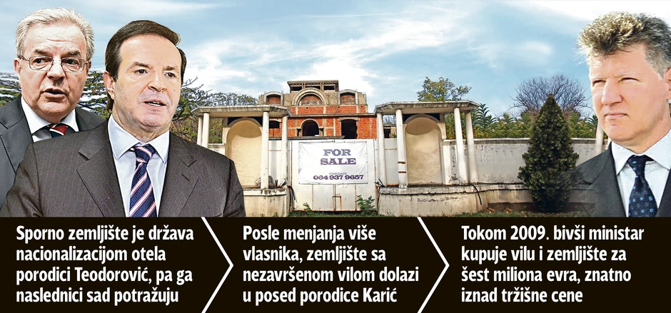 Zemljište od 1.329,30 metara kvadratnih, čiji povraćaj traže naslednici pravih vlasnika, i u međuvremenu podignut nedovršeni objekat bili su predmet kuporodajnog ugovora vrednog šest miliona evra između Dragomira Karića i kiparskog preduzeća "Reldor trading limited" iza koga sada stoji Novaković.