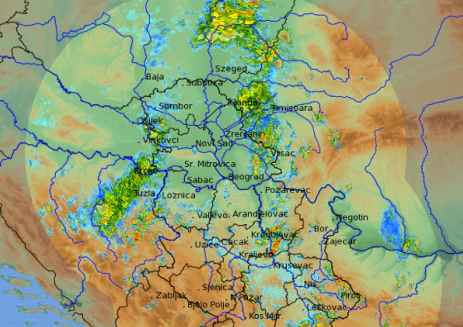 • Širom Banata u narednom satu nastavak pljuskova sa grmljavinom, koji će lokalno biti praćeni gradom i jakim, a na udare i olujnim vetrom