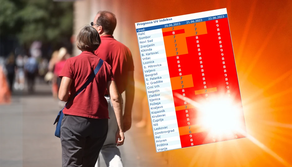Kako se na sajtu RHMZ-a može videti, prognozirane vrednosti UV indeksa tokom dana kretaće se na svim mernim stanicama u rasponu od 7 i 8 što znači da je UV zračenje visoko i veoma visoko.