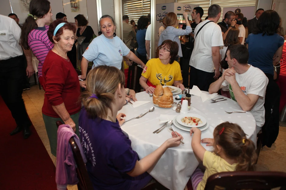 Humanitarnu akciju organizovale su 24Kitćen kanal, Ambasada Holandije i kompanija Imlek. Namirnice za pripremu obroka donirao je Metro Cash&Carry. Kako je saopštila kompanija Imlek, sve evakuisane porodice i spasioci smešteni u hotelu Slavija su nakon večere sa Rudolfom dobili poklon pakete Imlekovih proizvoda.