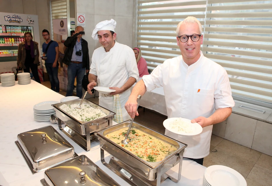 Najpoznatiji kuvar iz Holandije i zvezda televizijskog kanala 24Kitchen Rudolf van Vin, došao je danas u Beograd kako bi dao svoj doprinos u pružanju pomoći stanovništvu ugroženom poplavama u Srbiji, i zajedno sa kuvarima hotela Slavija spremio večeru za oko 400 majki sa decom koje su tamo smeštene nakon evakuacije.