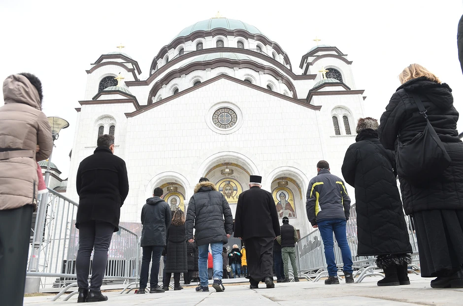 Veliki broj građana koji je došao da oda poslednju poštu preminulom patrijarhu, i dalje je ispred Hrama Svetog Save, gde su liturgiju i opelo pratili prteko video-bimova.