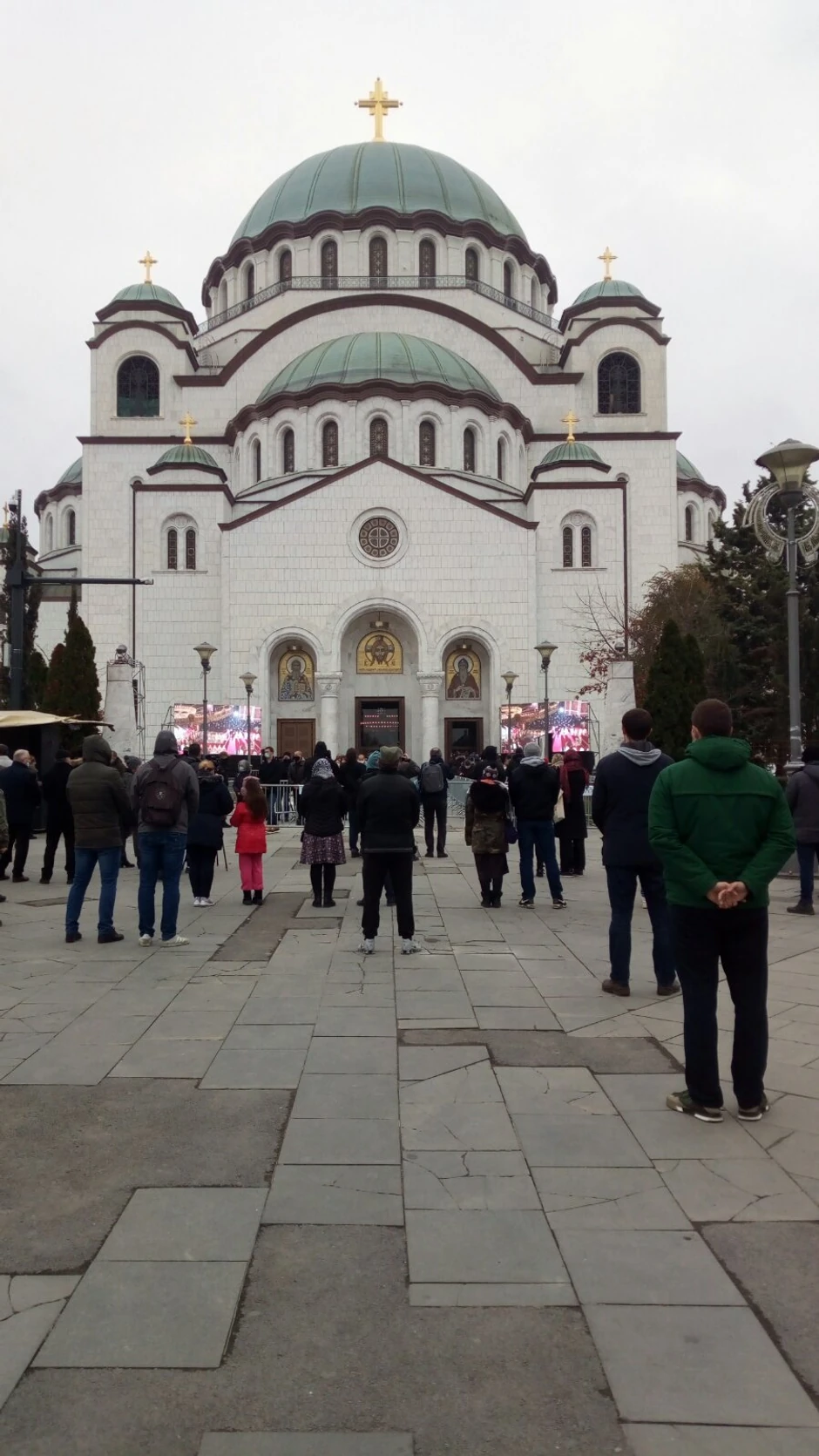 Za sve one koji neće stići na red, ili iz epidemioloških razloga ne žele da uđu u Hram, ispred ovog zdanja postavljena su dva video-bima, kako bi svi koji žele mogli da prate sahranu shpskog patrijarha.