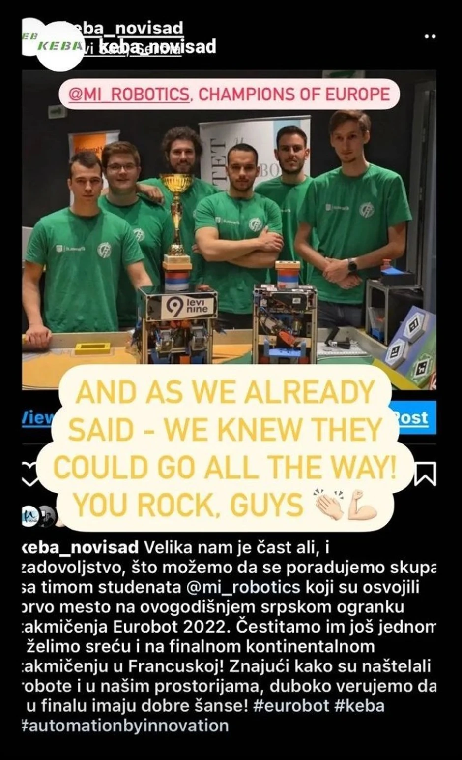 Subotičanin Aleksa Stevanović član je robotičarskog tima „MI“ i jedan od zaslužnih studenata za veliku pobedu Srbije na ovogodišnjem evropskom takmičenju „Eurorobot 2022“ u Francuskoj.