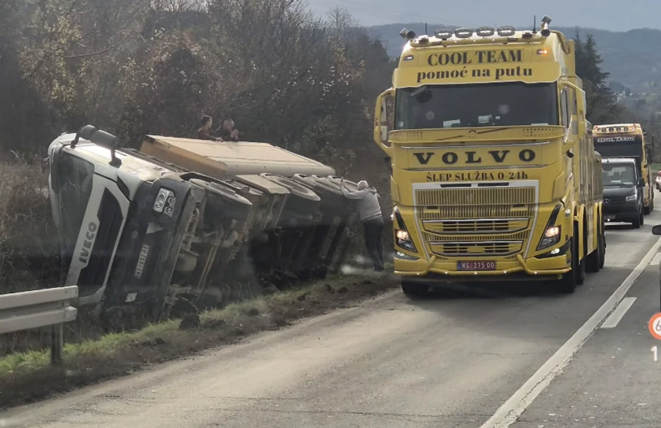 Kamion se prevrnuo kod Paragova na Iriškom putu, izazvavši saobraćajnu nezgodu