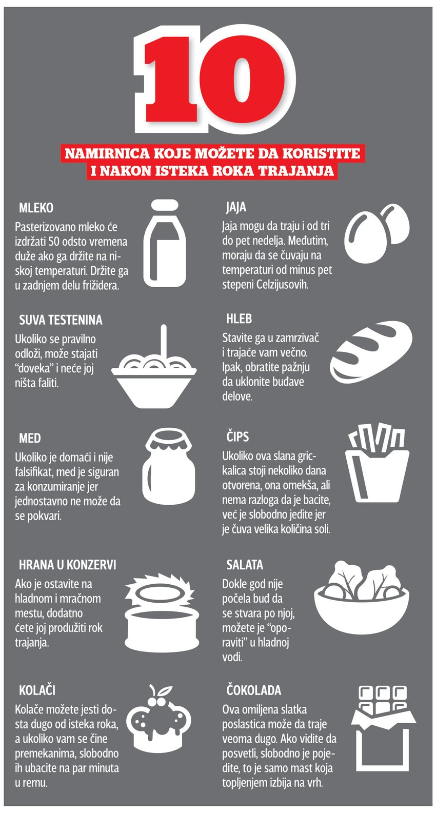 Nutricionista Milka Raičević napominje da u prirodi ne postoji nijedna namirnica koja ne trune, da čak i čovek ima svoj rok trajanja i da smo u zabludi da ih možemo večito čuvati.