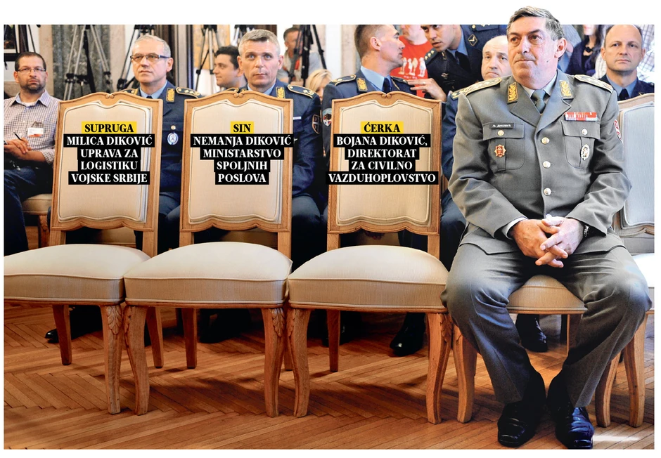 General Ljubiša Diković, načelnik Generalštaba Vojske Srbije, čitavu svoju porodicu - suprugu, sina i ćerku - udomio je u državne fotelje, saznaje “Blic”.