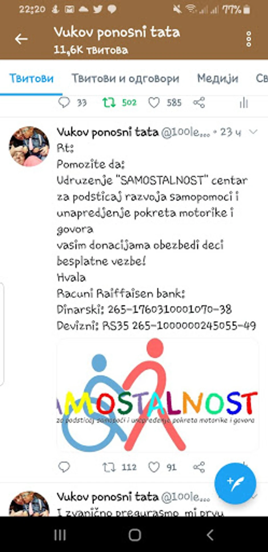 - Vuk je, kao i svaki dečak njegovog uzrasta, počeo da se svađa s nama i iskazuje negodovanje, što nam je veoma simpatično. U njegovoj ograničenoj komunikaciji ipak je naučio da nas doziva sa “bako”, “deko”, “mama”, “tata”, a evo sad je tu i “bata”, što stalno odjekuje našim domom - objašnjava Stojan.