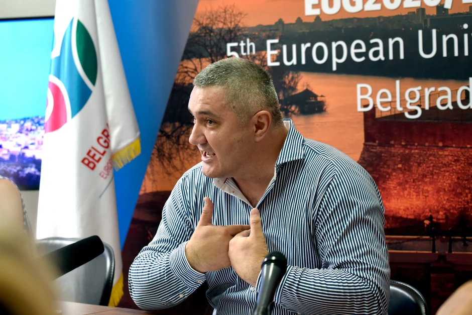 Osumnjičeni S.J. odgovorno lice privrednog društva „Evropske univerzitetske igre 2020“ d.o.o. Beograd, se sumnjiči da je, u periodu od decembra 2017. do marta 2018. godine, sa četrdesetpetogodišnjim muškarcem, bez sprovedenog postupka javne nabavke, izradu master plana za organizaciju evropskih univerzitetskih igara dodelio jednom privrednom društvu iz Novog Sada, za iznos od 572.000 evra u dinarskoj protivvrednosti.