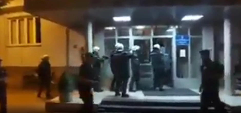 Naime, na snimku koji je okačen na Fejsbuku vidi se masa ljudi pred policijskom stanicom i niz pripadnika policije koji su bili u punoj opremi sa šlemovima i štitovima.