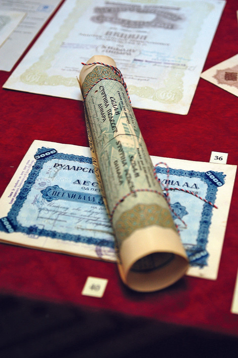 - U Arhivu imamo i kolekciju akcija banaka, raznih preduzeća, osiguravajućih društava i dnevnih listova iz perioda pre Drugog svetskog rata. Idejna rešenja za njihov izgled radili su tada vodeći slikari, poput Bete Vukanović, koja je osmislila akciju Slovenske banke. Osnivači akcionarskih društava obično su želeli da na tom malom papiru bude prikazano nešto što karakteriše njihov rad, pa su tako na akciji Mesarske banke predstavljene glave nekoliko domaćih životinja i dve satare, a na akciji Srpsko amerikanske banke Saborna crkva i Kip slobode. U Srbiji je, inače, sve do tridesetih godina 20. veka postojalo mnogo malih banaka, koje nisu imale ekspoziture, već su na uskoj teritoriji nekog grada ili varoši, kao svojevrsni monopolisti, naplaćivale zelenašku kamatu na zajmove lokalcima - kaže naša sagovornica.