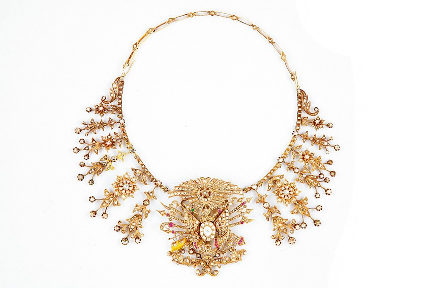 Radnja u Beču u kojoj je nakit napravljen odavno ne postoji, ali njen žig, jedva vidljiv golim okom, stoji na četiri mesta na poleđini ogrlice koja teži 130 grama i sastoji se od čistog zlata, u čije reljefe je ugravirano 620 dijamanata raznih veličina, 18 rubina i jedan smaragd. U centralnom delu, levo i desno od najvećeg dijamanta, minuciozna ruka bečkog majstora izvajala je različite vrste oružja, simbole svih rodova vojske Otomanskog carstva i vagu kao simbol pravde. Moglo bi se reći da zlato i drago kamenje nije najveća vrednost ogrlice već ona, zapravo, predstavlja nacionalno blago turske države koja baštini tradiciju Osmanskog carstva. Vrednost i umešnost zlatarske izvedbe, na zahtev vlasnika, potvrdio je i stručnjak Istorijskog muzeja Srbije, a verodostojnost ogrlice je proveravana i u Beču.