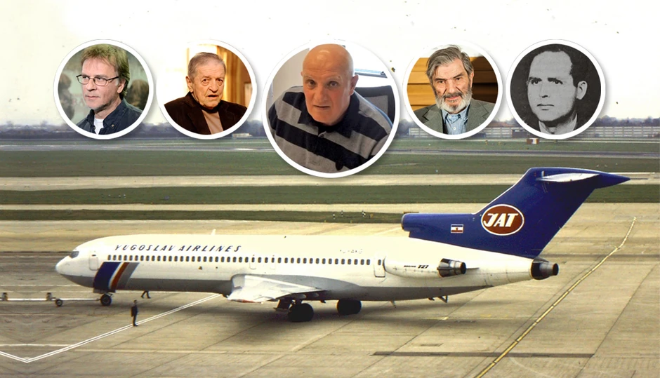 U otetom avionu bili su i glumci Miša Janketić, Žarko Laušević, Marko Nikolić, rok pevačica Biljana Petrović, narodni heroj Milan Šijan i još nekoliko poznatih ličnosti iz javnog života tog vremena.